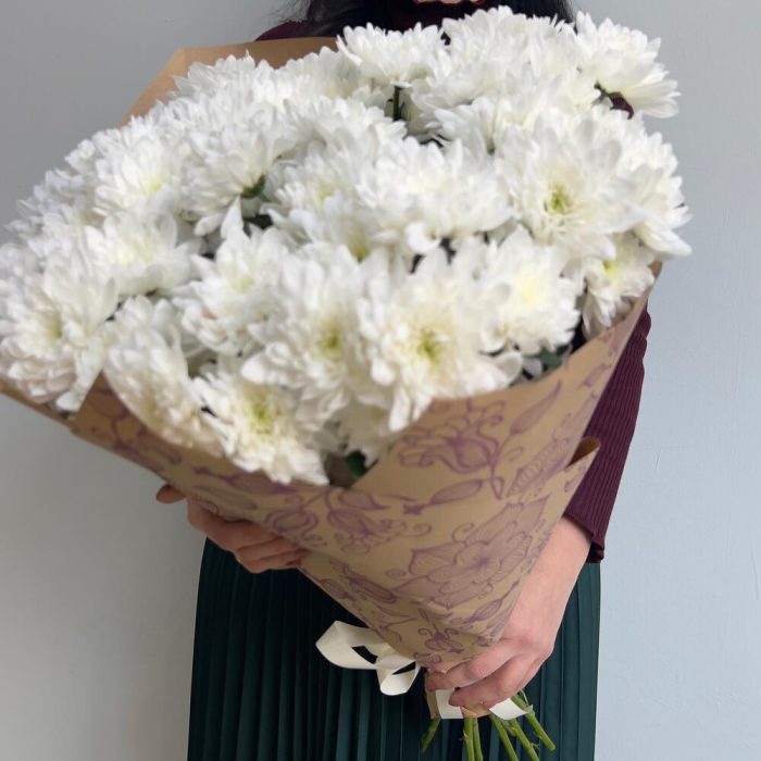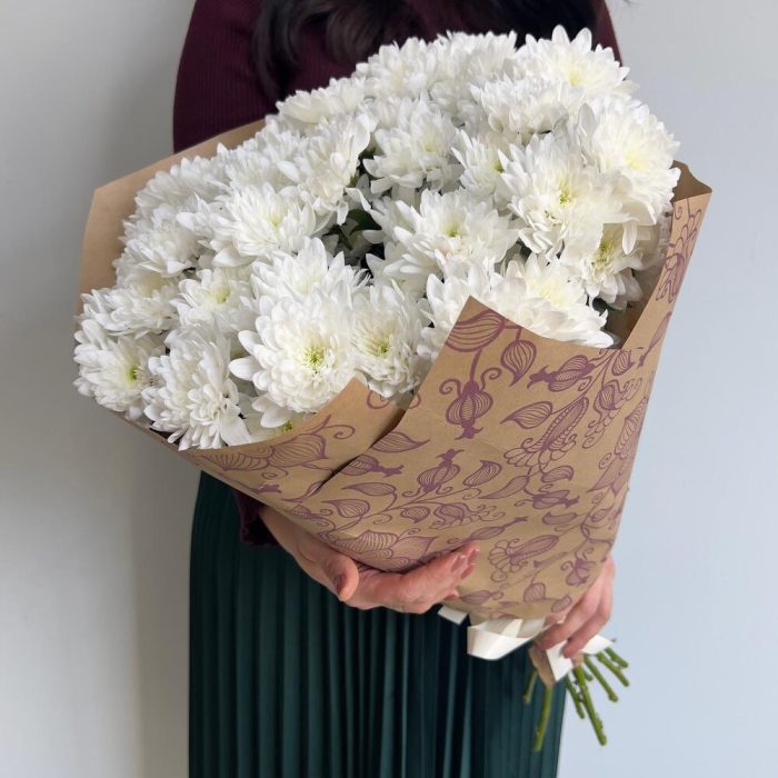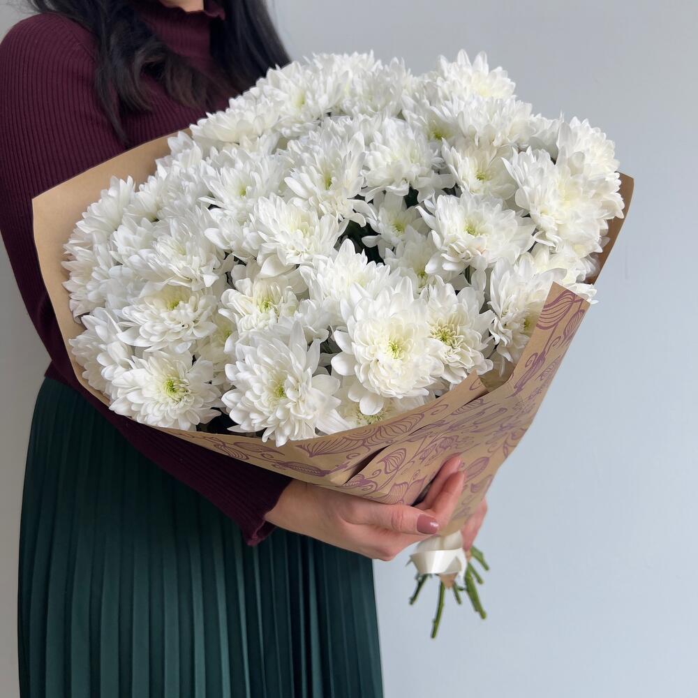Крафт упаковка – 3 шт.хризантемы кустовые – 11 шт.