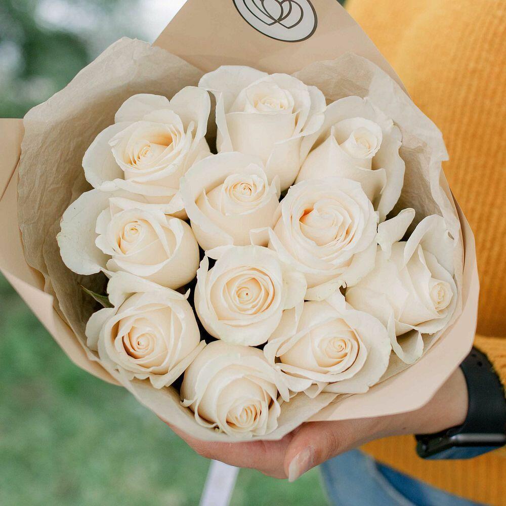 Букет из 11 белых роз (Эквадор) 50 см Vendela в кремовой пленке
