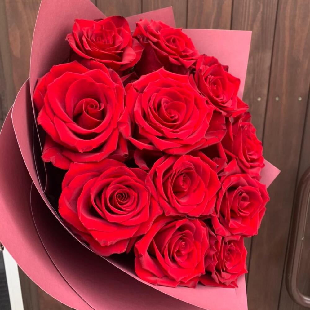 Букет из 11 красных роз 35-40 см (Кения) в стильной упаковке
