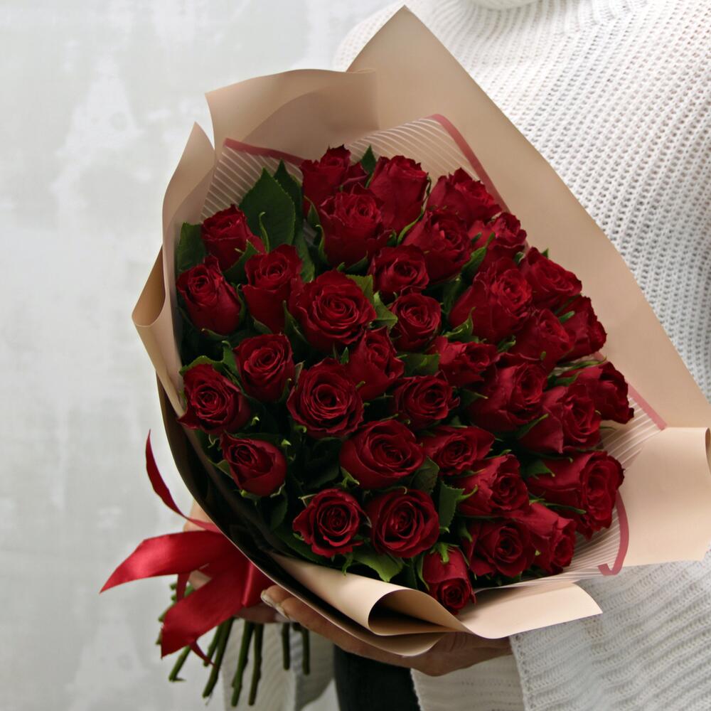 Букет из 35 красных роз 35-40 см (Кения) в стильной упаковке