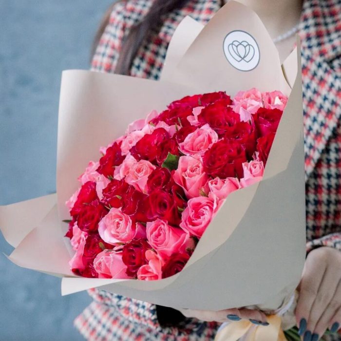 красные розы – 25 шт.коралловые розы (кения) – 26 шт.