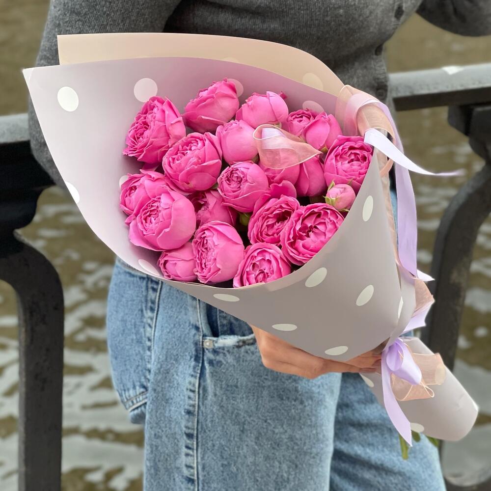 Лента – 1 шт.Упаковка дизайнерская – 1 шт.роза мисти бабл пионовидная – 5 шт.