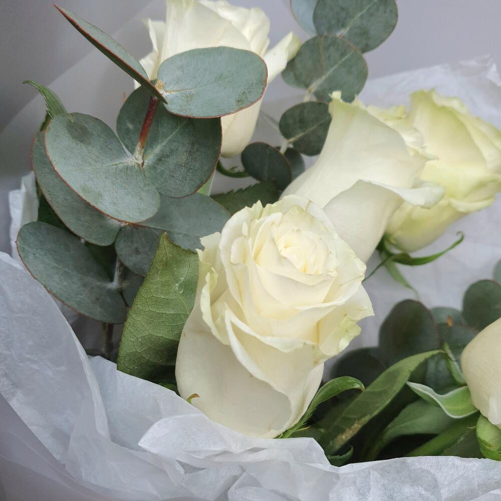Роза – 5 шт.Эвкалипт – 3 шт.Упаковка дизайнерская – 2 шт.